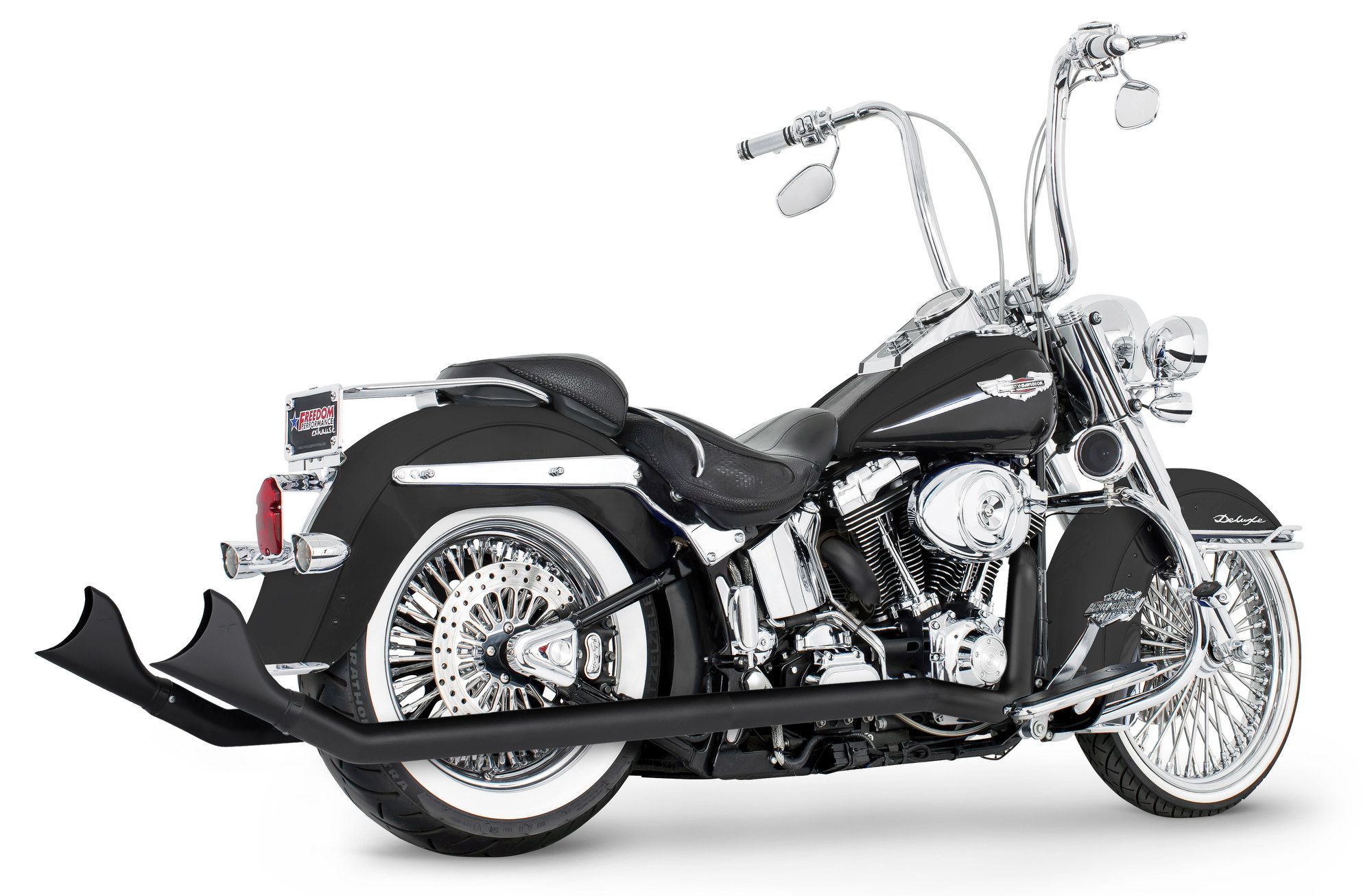 Diese wunderschöne DESPERADO Dual Anlage für unsere Chicano-Fans mit Fishtail Endkappen passt auf die Softail. (ausser Breakout / Rocker C) Die Anlage hat einen schönen urbanen Harley-Sound. Der Anbau ist schnell erledigt, es gibt keine Servos, Klappen oder Eingriffe in die Elektronik. Eine Anpassung der Einspritzanlage ist dabei nicht nötig. Wir liefern diese Anlagen in der keramisch mattschwarz beschichteten Ausführung, mit neuen Krümmerdichtungen und den schönen FishTail Endkappen betriebsbereit. Der Anbau ist mit der beigelegten Anbauanleitung auch für den Privatman kein Problem. Eine wirklich tolle Anlage mit einem perfekten Preis-Leistungsverhältnis. Diese Anlage ist eine Sonderanfertigung und damit Sonderbestellung.