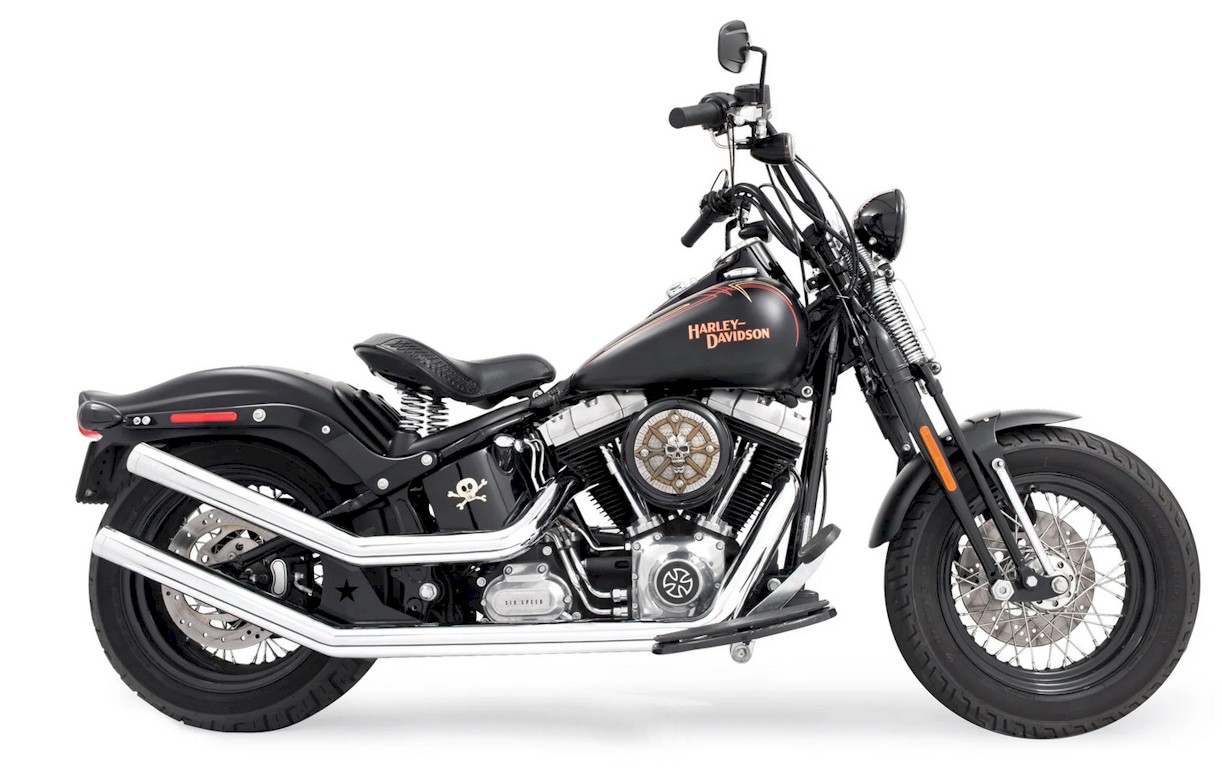 Back to the 70ths! Ein Traum von Auspuff Upsweep Design ist endlich zu haben. Als 2-2 Auspuffanlage kann sie sowohl mit exzellentem Sound als auch mit guter Leistung überzeugen. Der Klang ist genau so, wie man sich den an seiner Harley wünscht = hörbar, überzeugend, aber nicht störend. Die Anlage wiegt gerade mal 12 Kilo komplett, liegt schön eng am Motor und Fahrwerk an - natürlich ist da kein Platz mehr für die Sozia! Abbildung beispielhaft, die Krümmerführung ist veränderlich, in Abhängigkeit von Modell und Baujahr. Keine Klappen, keine Elektronik, kein fummeln und kein Ärger – aber einen schönen Klang, ganz Harley! Natürlich kommt auch die Leistung nicht zu kurz. Eine Anpassung der Einpritzanlage ist nicht nötig. Eine Anpassung / Einstellung der Vergaser wird empfohlen, um besten Klang und Performance zu ermöglichen. Vergaser sollten ohnehin alle Jahre überholt werden. Wir liefern diese Anlage natürlich mit neuen Krümmer Dichtungen. Diese Anlage gibt es nur bei uns im Store oder online hier! Fragen? Ruf uns doch an...