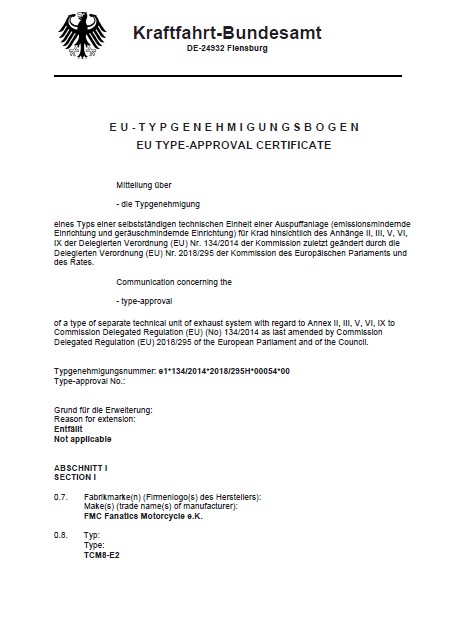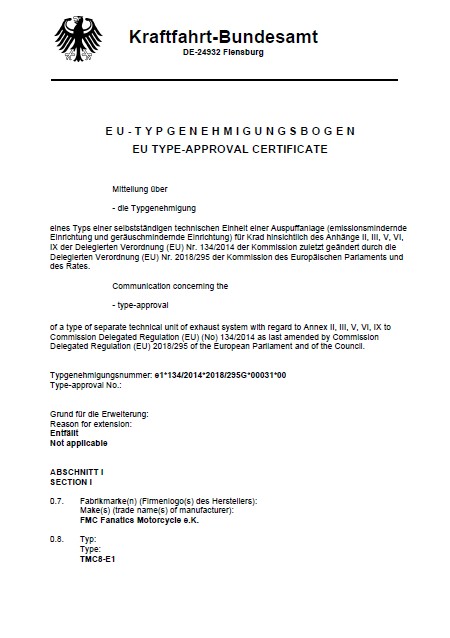Die Fanatics Motorcycle e.K (FMC) unterhält am Standort Deschland ein Qualitätsmanagement nach ISO DIN 9001/2008 und ist mit Register Nummer 20110013018 für die