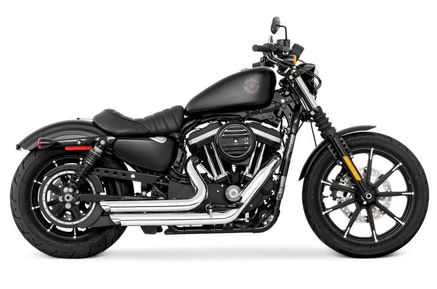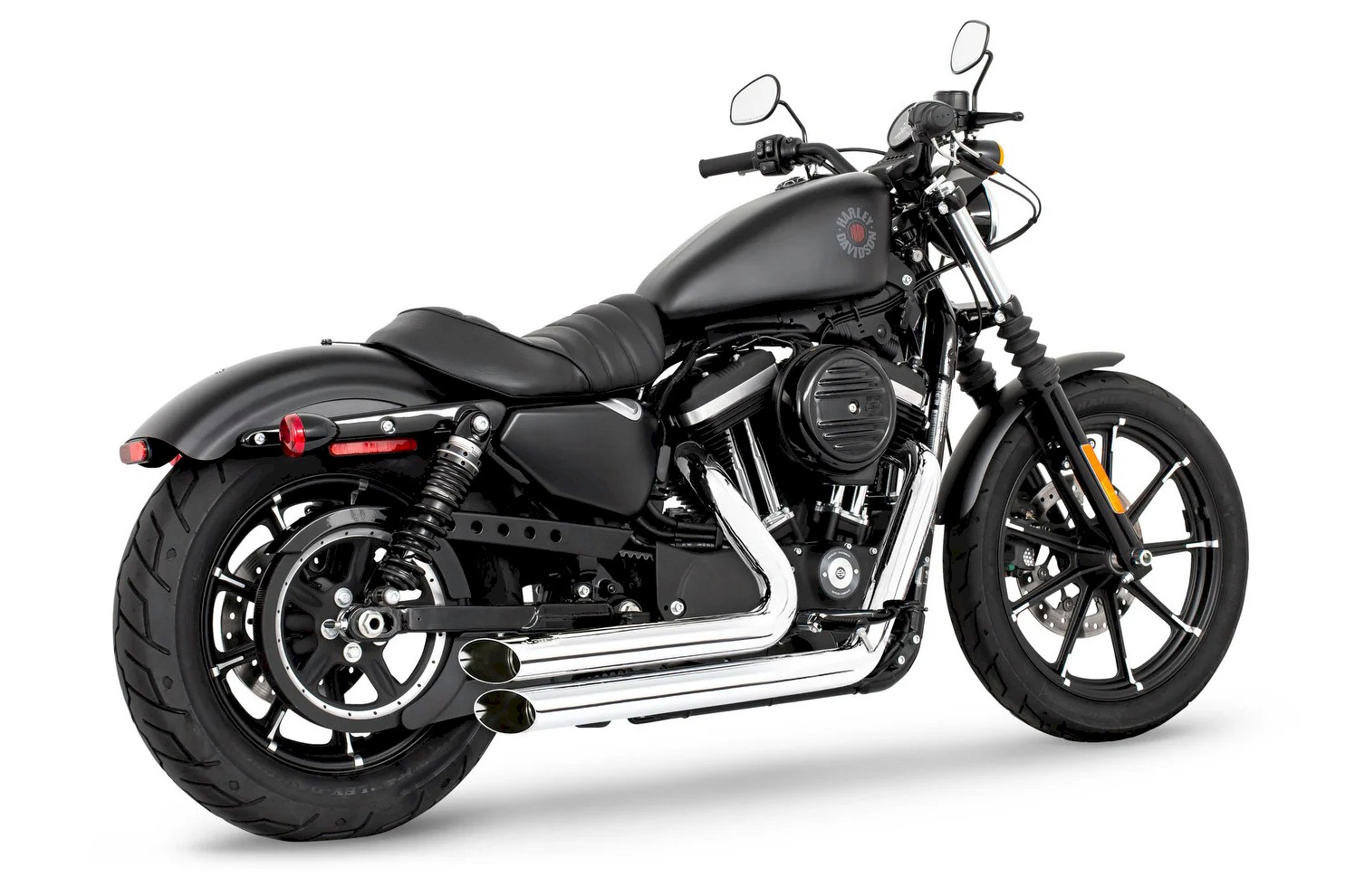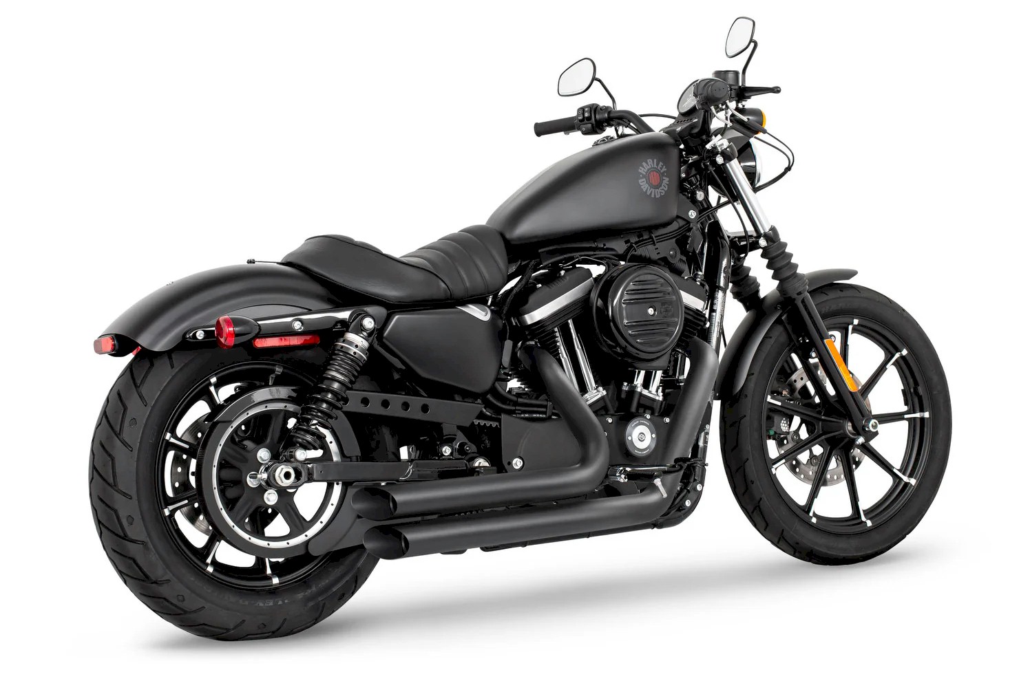 The THORCAT Mad Max exhaust system as a special series "Rockatanski" for the Sportster with X Torque System is really an exhaust dream! We put all our experience into it, combined the best features and the result was a truly unique facility. It offers almost a liter more volume than a Short Shots, which makes it the "King of Sound" in this class, the two fat manifolds are plugged in variably, which makes the entire system adaptable. Despite all that, just look at those finishes and that slim line! The large interference chamber and the TCM8 system, which is brand new for this system, create an exciting sound plus good performance despite these compact dimensions. As a static system without flaps, the parameters always remain the same. It comes with matte black coated, 220 degree heat shields and the popular slash cut ends. Carburetor adjustment is recommended on Sportster models with carburetors, fuel injection adjustment is not necessary on Sportster models with one.