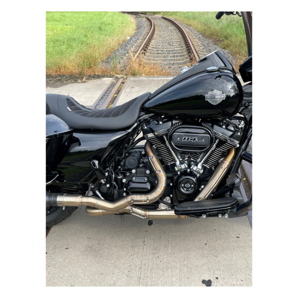 Racing system. This Kodlin 2 into 2 headpipe system is made by Zard. Like Zard's own systems, this Kodlin special is made from AISI 304 stainless steel with visible Mig welds. Manufactured using high end 2D/3D lasers, robots, bending machines and skilled qualified welders for a perfect result. - Compatible with stock or aftermarket mufflers - Compatible with stock to high performance motors - Clear stainless works finish - With a riveted 'Kodlin powered by Zard' plate - Fits with OEM floorboards or Ness Mid Controls for Touring models