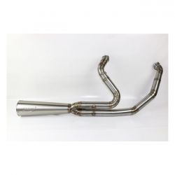 Euro 4 and Euro 5 homologated Kodlin 2 into system made by Zard. Exhaust flanges only are mounted to the heads. The headers are pushed into the exhaust flanges and are held in place with springs, same with the mufflers. Offers super easy and quick exhaust removal during engine or transmission maintenance. Like Zard's own systems, this Kodlin special is made from AISI 304 stainless steel with visible Mig welds. Manufactured using high end 2D/3D lasers, robots, bending machines and skilled qualified welders for a perfect result. Comes with a plain stainless steel works finish and a powerful sound. - Compatible with stock to high performance motors - Clear stainless works finish - With a riveted 'Kodlin powered by Zard' plate - 3 lambda sensor connections (2 large for wideband sensors for tuning, incl. adapter for OEM sensors) Note: This is a EU homologated slip-on exhaust system. Removing or modifying the Db killer on homologated mufflers will void the warranty and the homologation. Certification is valid for unmodified stock bikes, for the specific models and model years as mentioned in the product descriptions (Directive 97/24/CE, EU regulation 134/2014). The approval number, shown on the supplied relevant certificate, is stamped on the muffler and it must be presented to law enforcement when checked.