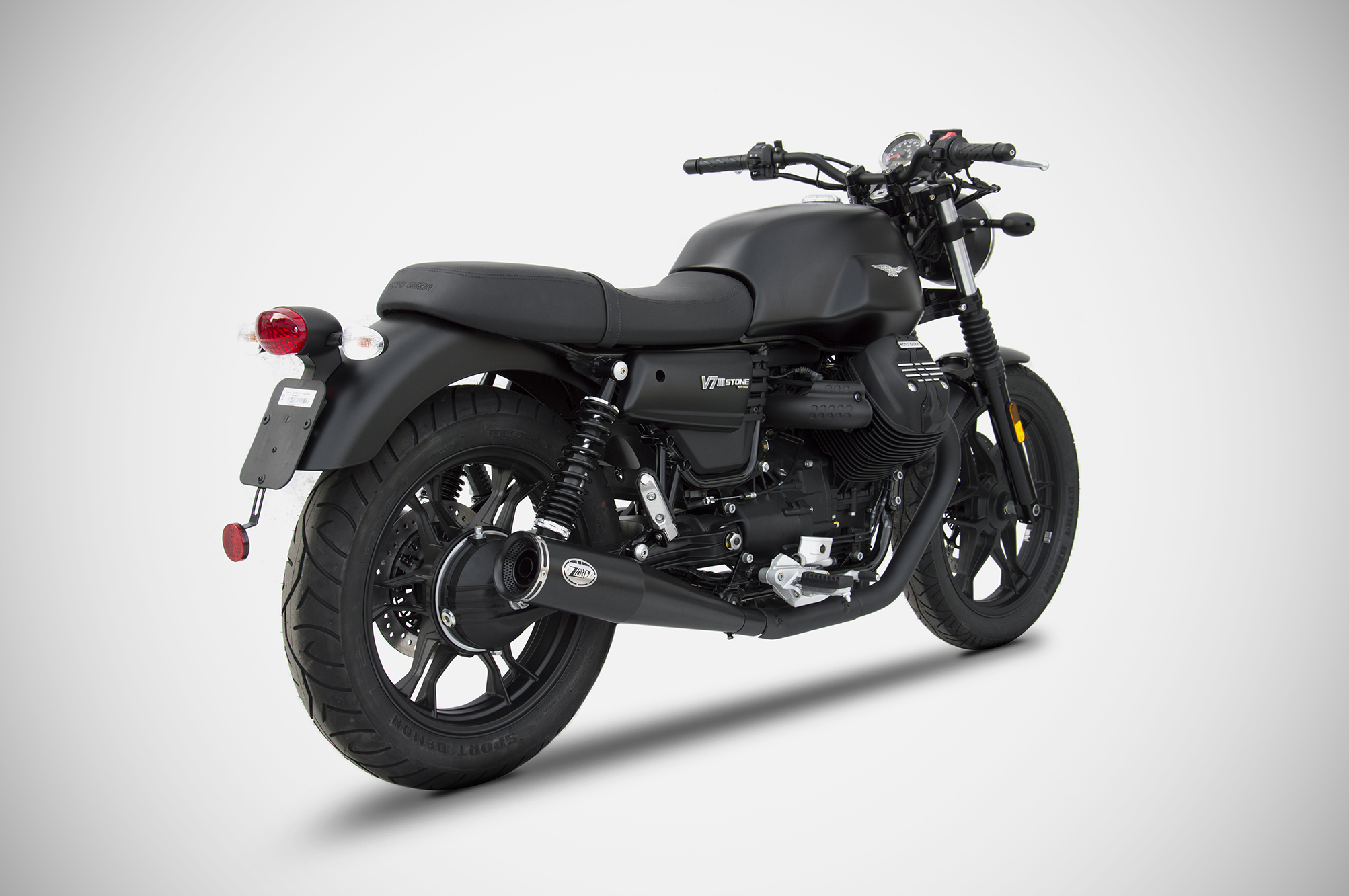 The Zard Zuma Slip-on 2-2 rear silencers produce a beautiful, rich, and muffled sound on the Moto Guzzi V7 III. The silencers are available in black stainless steel or polished stainless steel with Euro 4 approval. The DB-Eater is removable. The Zuma rear silencers are top quality and an eye-catcher on the V7 III.