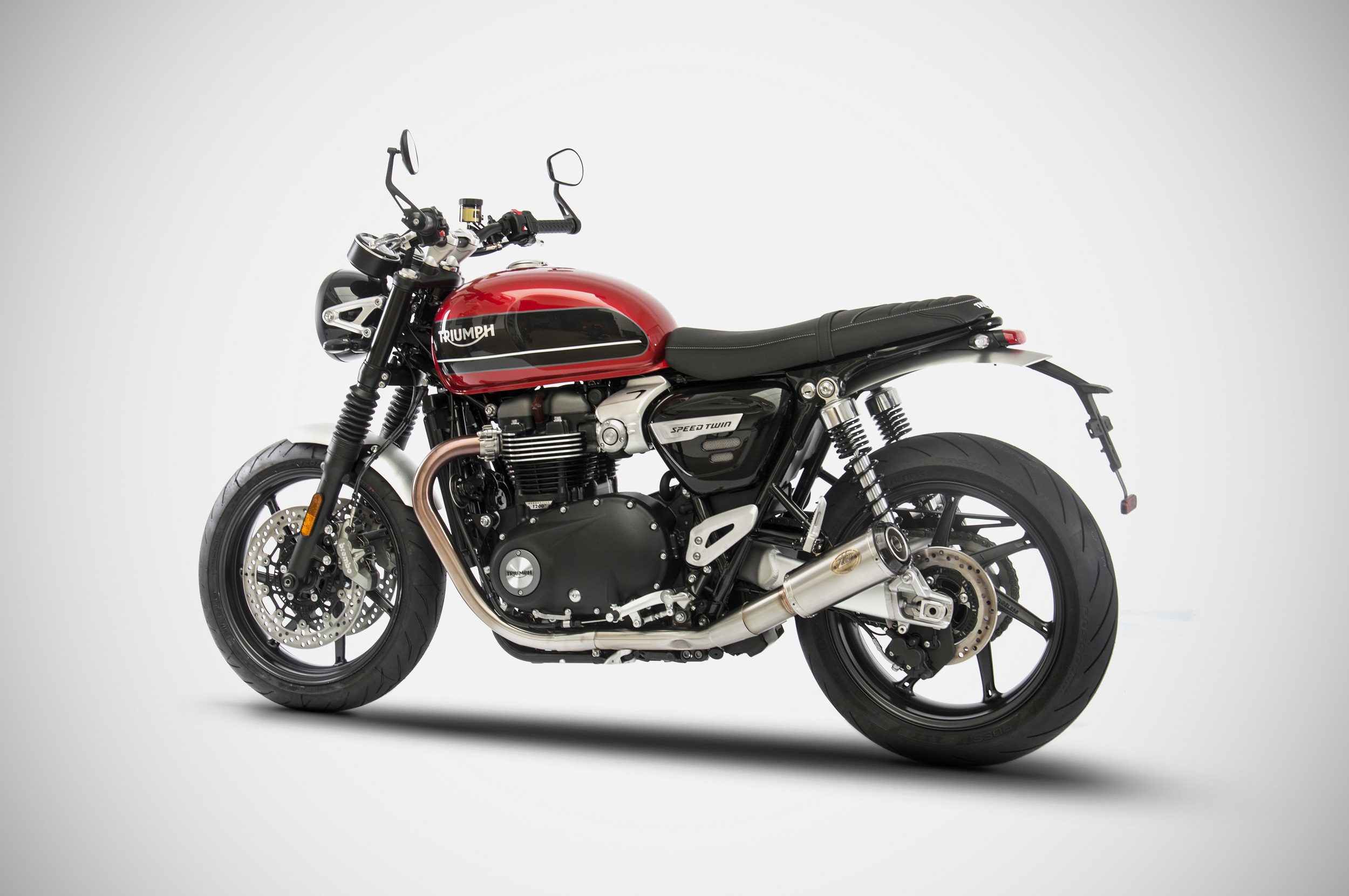 Zard offers a beautiful 2-2 slip-on exhaust system for the Triumph Speed Twin 1200 built between 2018 and 2020 that complies with Euro 4 emissions standards! The exhaust is Euro 4 approved, so no registration with the TÜV is necessary! The stainless steel exhaust system is available with an optional carbon end cap. The sound is beautifully muffled and rich! Everything needed for installation is included in the scope of delivery! The Zard slip-on exhaust system is 2.2 kg lighter than the standard system!
