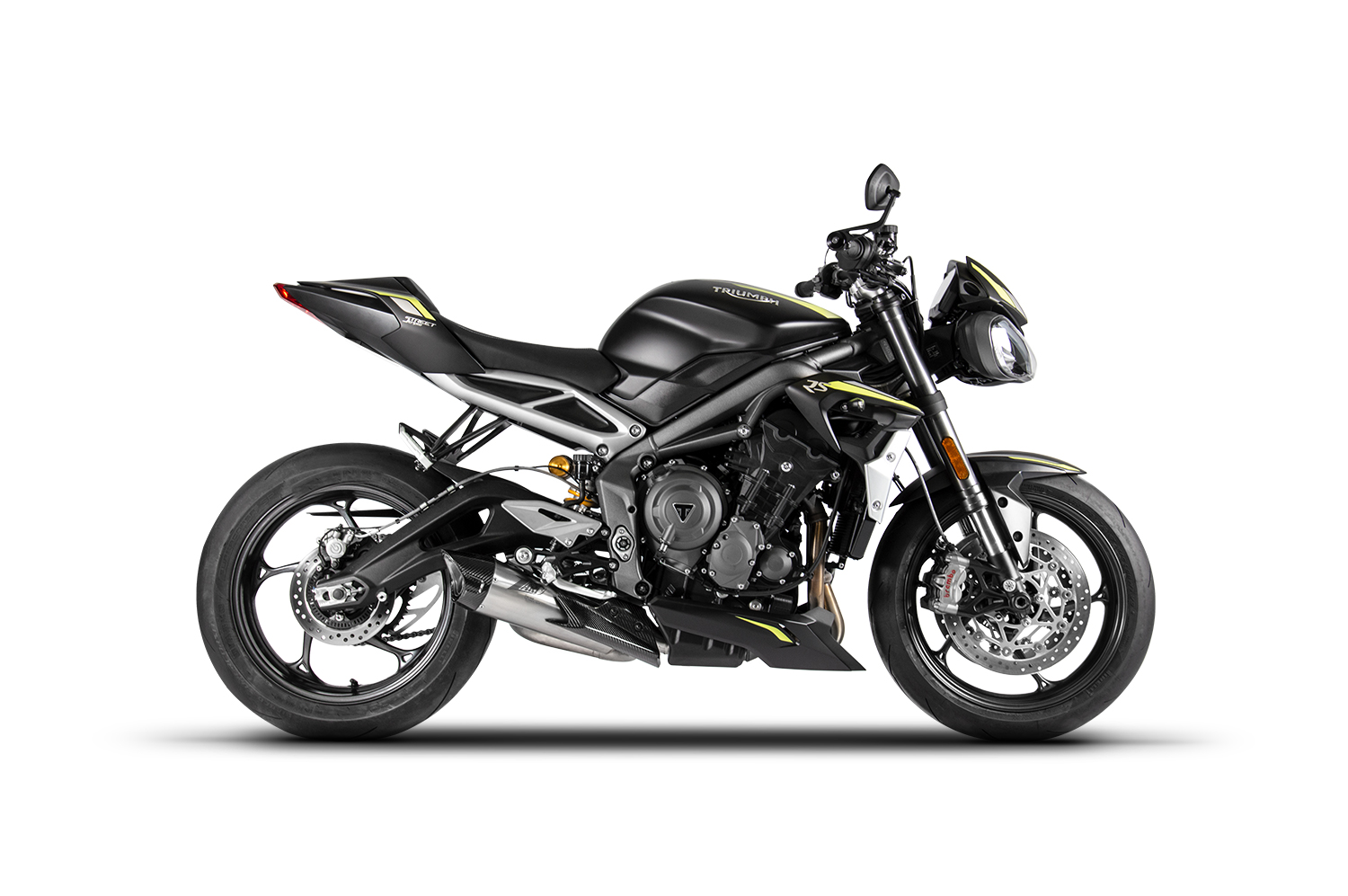 The Zard Slip-on 3-1 exhaust system, suitable for the new Triumph Street Triple 765, has a beautiful deep and rich sound. All mounting materials are included in the scope of delivery! The carbon heat shield and carbon end cap round off the finish of the system and are included in the scope of delivery. Power and torque are improved compared to the original exhaust. The EC-approved rear silencers have an engraved E-number and do not need to be entered in the vehicle documents. Thanks to its high-quality workmanship, the Zard rear silencer is a real eye-catcher on the Triumph Street Triple 765.